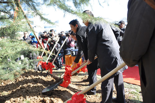 在現(xiàn)場可以看到,一個(gè)巨大的幕布從大廈西側(cè)的頂樓垂下,上面印著百度數(shù)千名員工照片組成的笑臉,使過往的行人都感受到慶典儀式的喜慶氛圍。儀式上,300名百度員工及百度愛好者們共同出演“百人秀”,通過跑動(dòng)在大廈前的廣場上排出一個(gè)個(gè)活潑生動(dòng)的慶典圖案,更將整個(gè)活動(dòng)的氣氛推向高潮。最后,李彥宏和員工及網(wǎng)友代表一起,在大廈前種下一棵象征基業(yè)長青的雪松,培上百度各地網(wǎng)友取來的五岳之土,并以長江、黃河之水澆灌。