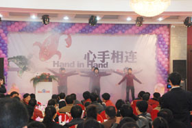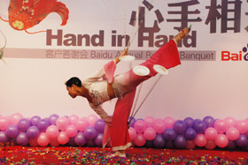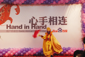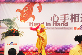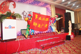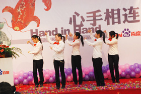 陽光絢爛,暖暖的冬風輕拍著臉蛋,心情格外的爽快。2008年12月20日,“心手相連”百度客戶答謝會在鹽城山青水秀綠色生態(tài)美食園隆重舉行,200多人的會場坐無虛席!此次會議可謂“眾星云集”,泰州名主持小柏擔任此次會議的主持,我們也有幸邀請到百度客服經(jīng)理張鵬擔任此次會議的主講。午宴開始前百度渠道部經(jīng)理晟皞的祝酒詞,百度市場部經(jīng)理李方巖的“友情客串”,為此會議的舉辦增色不少。